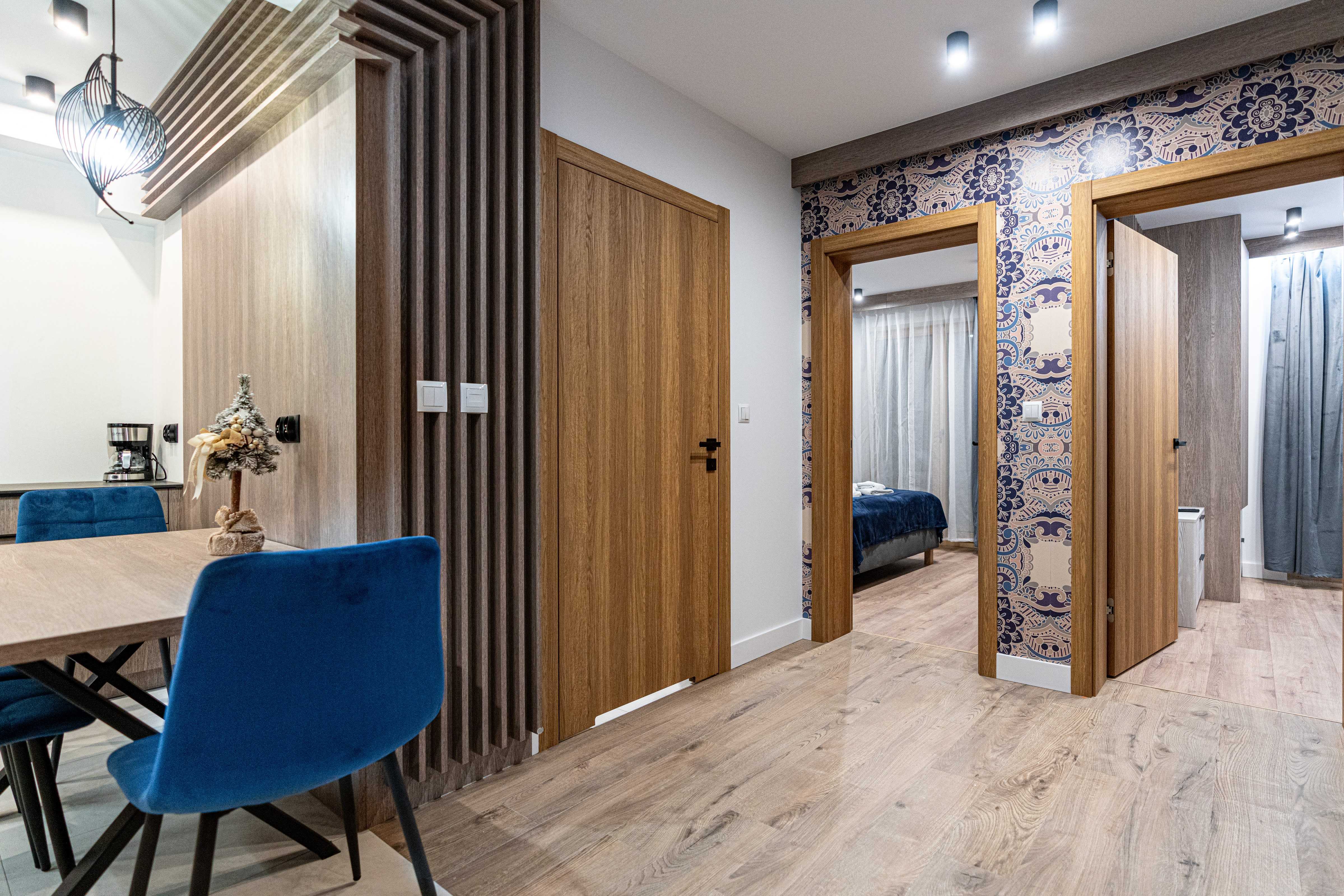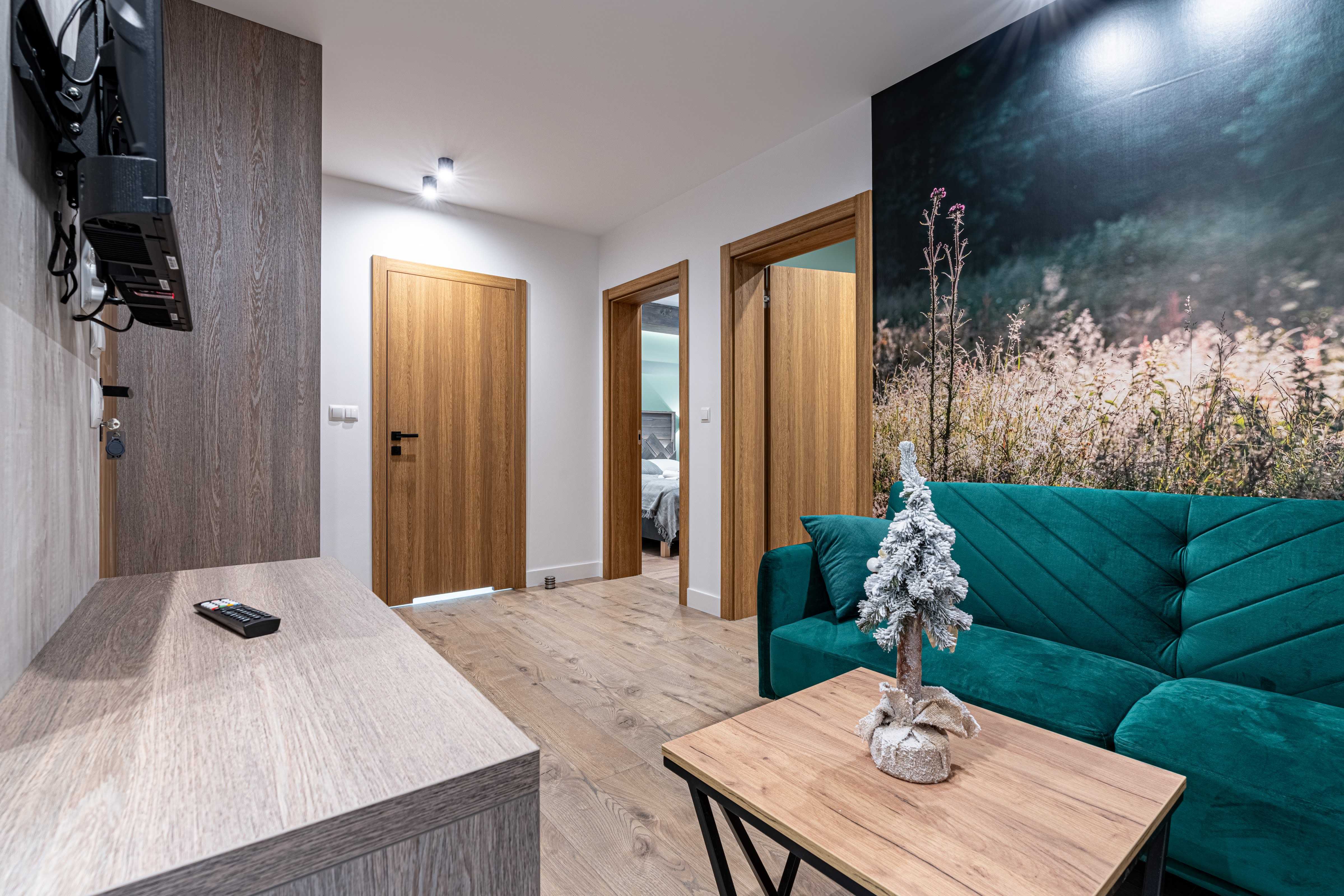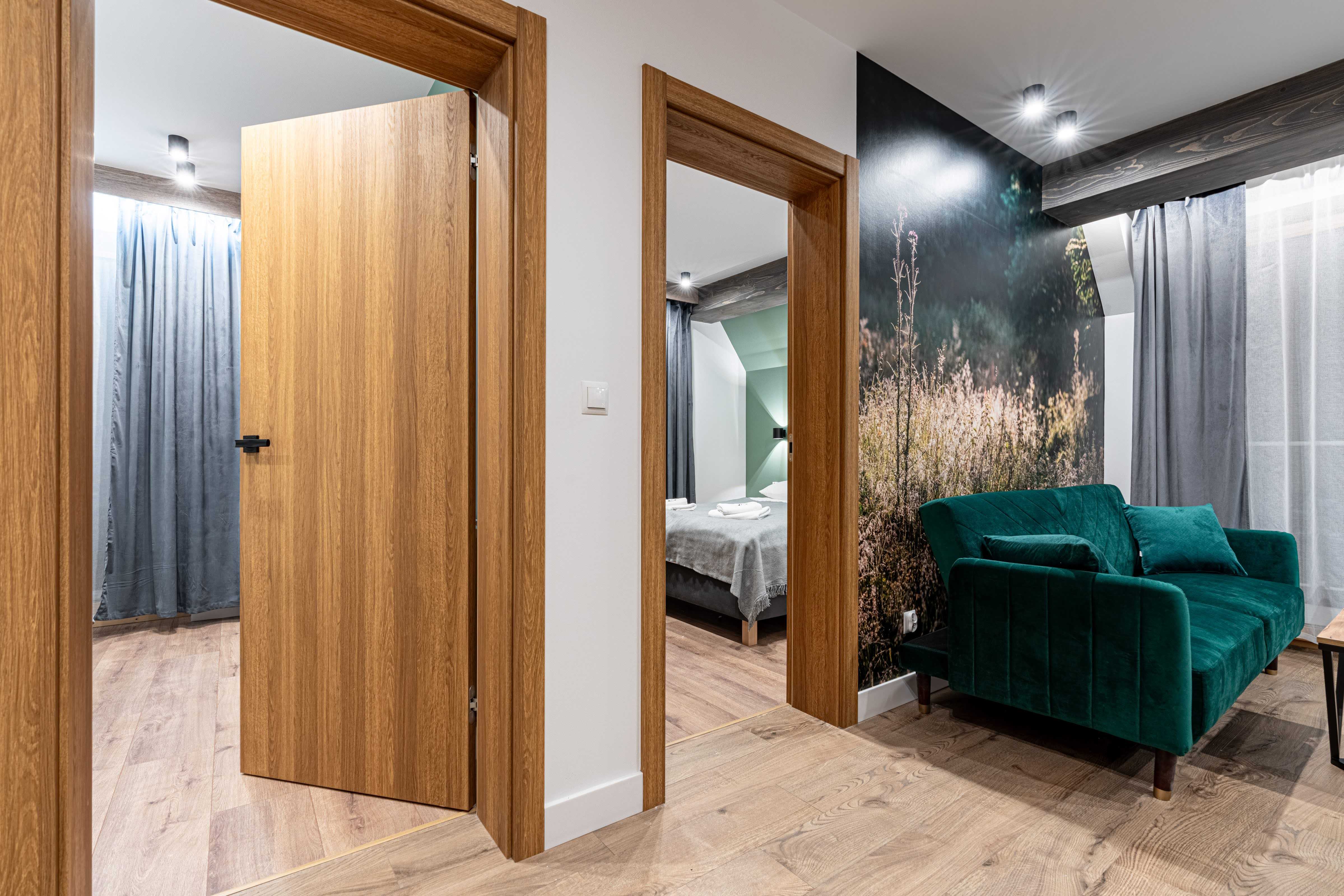 Każda z sypialni posiada łóżko małżeńskie (140 cm) natomiast przestronny salon rozkładaną sofę 1-osobową